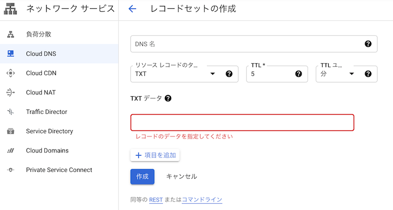 | 2 | リソースレコードのタイプ | TXT |
